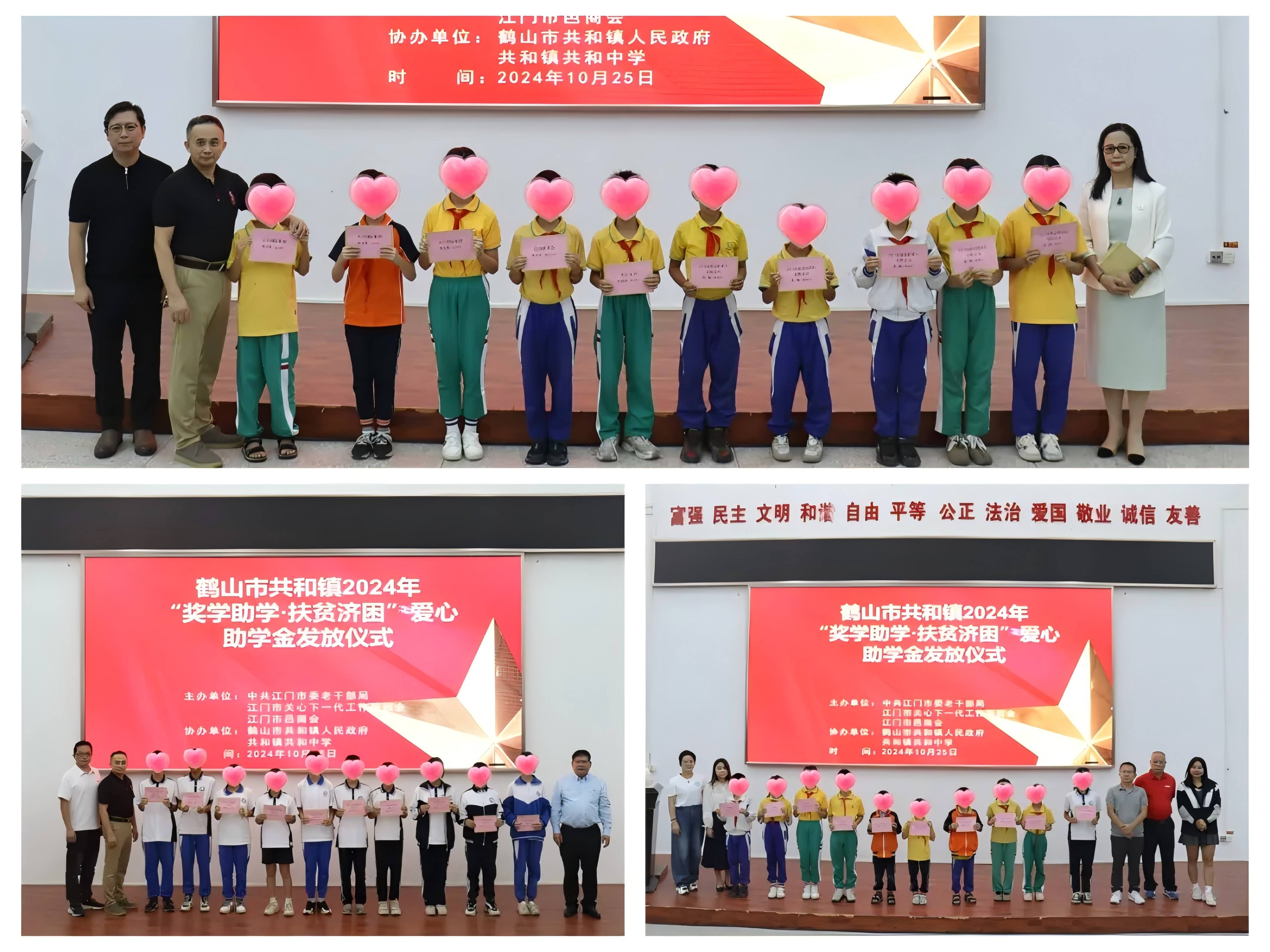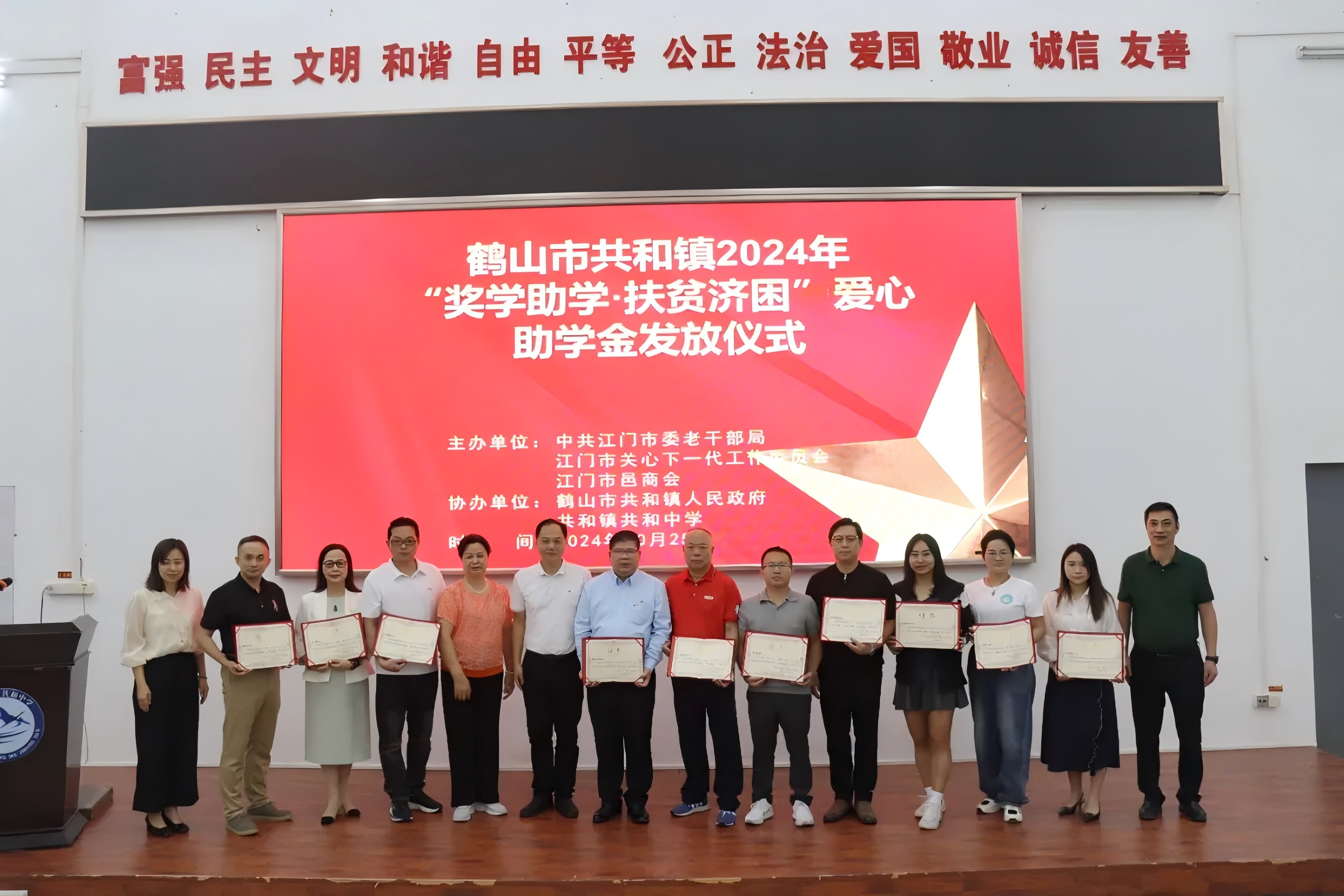 2024年10月25日,江門市委老干部局、江門市關工委、共和鎮委鎮政府,攜手江門市邑商會,在共和中學舉行了“獎學助學·扶貧濟困”愛心助學金發放儀式,為我鎮優秀困難學子筑夢未來。這次活動讓我回想起自己當年小學初中求學時的情景,感慨萬千,同時提升了我個人和《灣區華商》在公眾心目中的形象。這是一次愛心的傳遞,更是一次精神的洗禮,激發了廣大學生的學習熱情,為共和鎮教育事業的發展注入了新的動力。